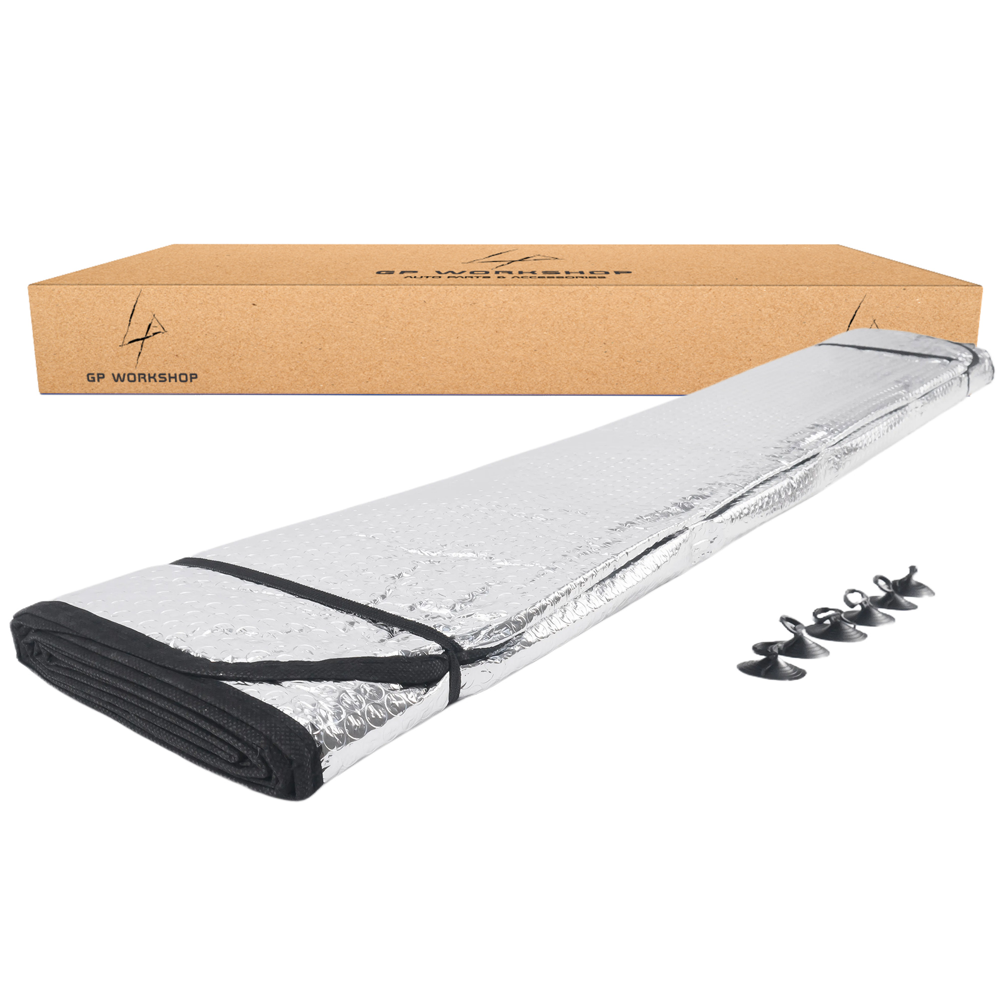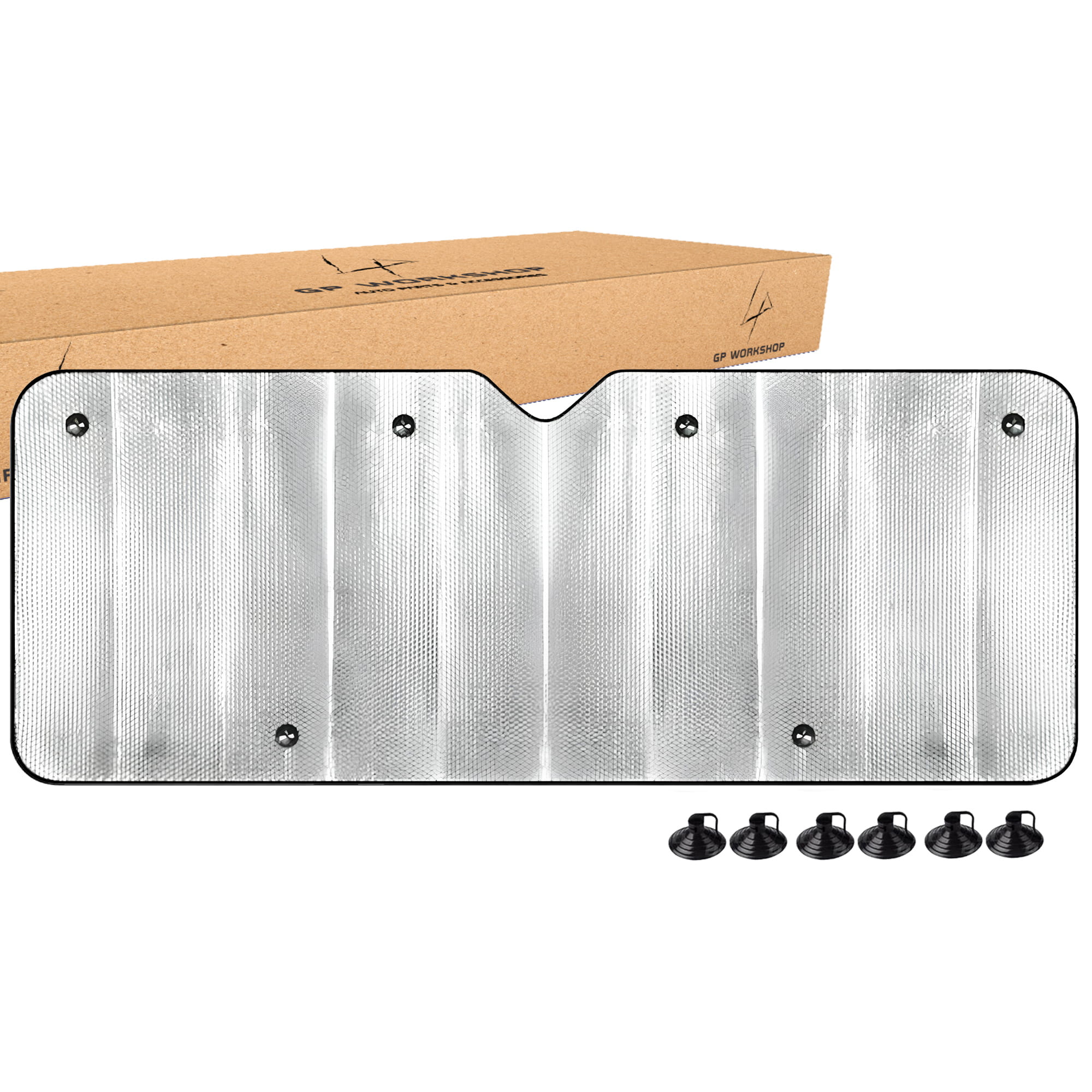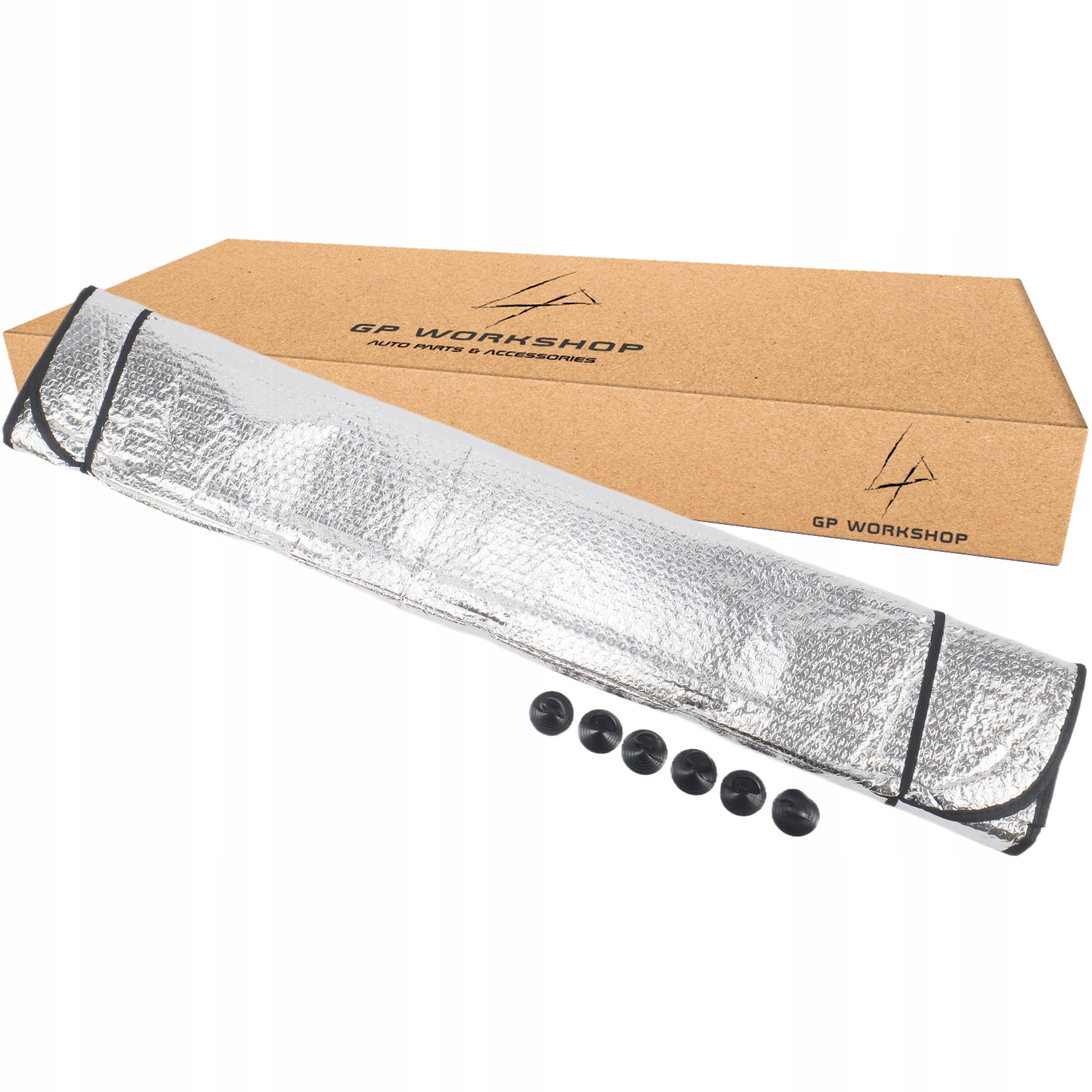 - Mata jest gotowa do montażu, w zestawie znajduje się 6 sztuk przyssawek, którymi mocuje się matę do przedniej szyby. Dodatkowo można zahaczyć osłonę za gumki, które są do niej przyszyte.