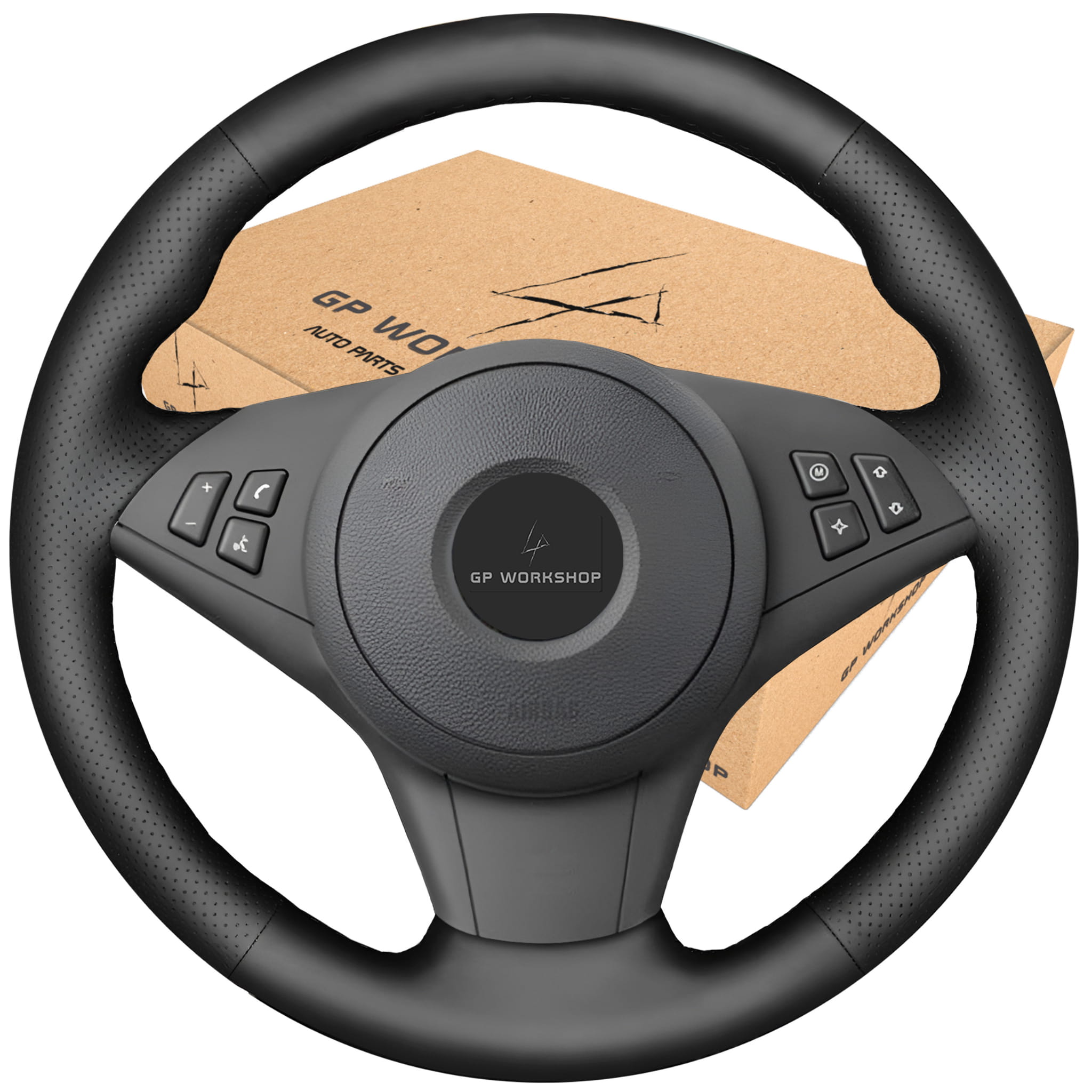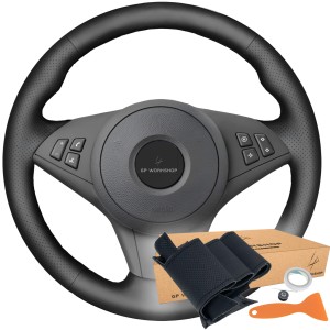 Pokrowiec kierownicy - wykrój do obszycia - BMW SERII 5 6 E60 E61 530d E63 E64 630i 650i - CZARNA NIĆ