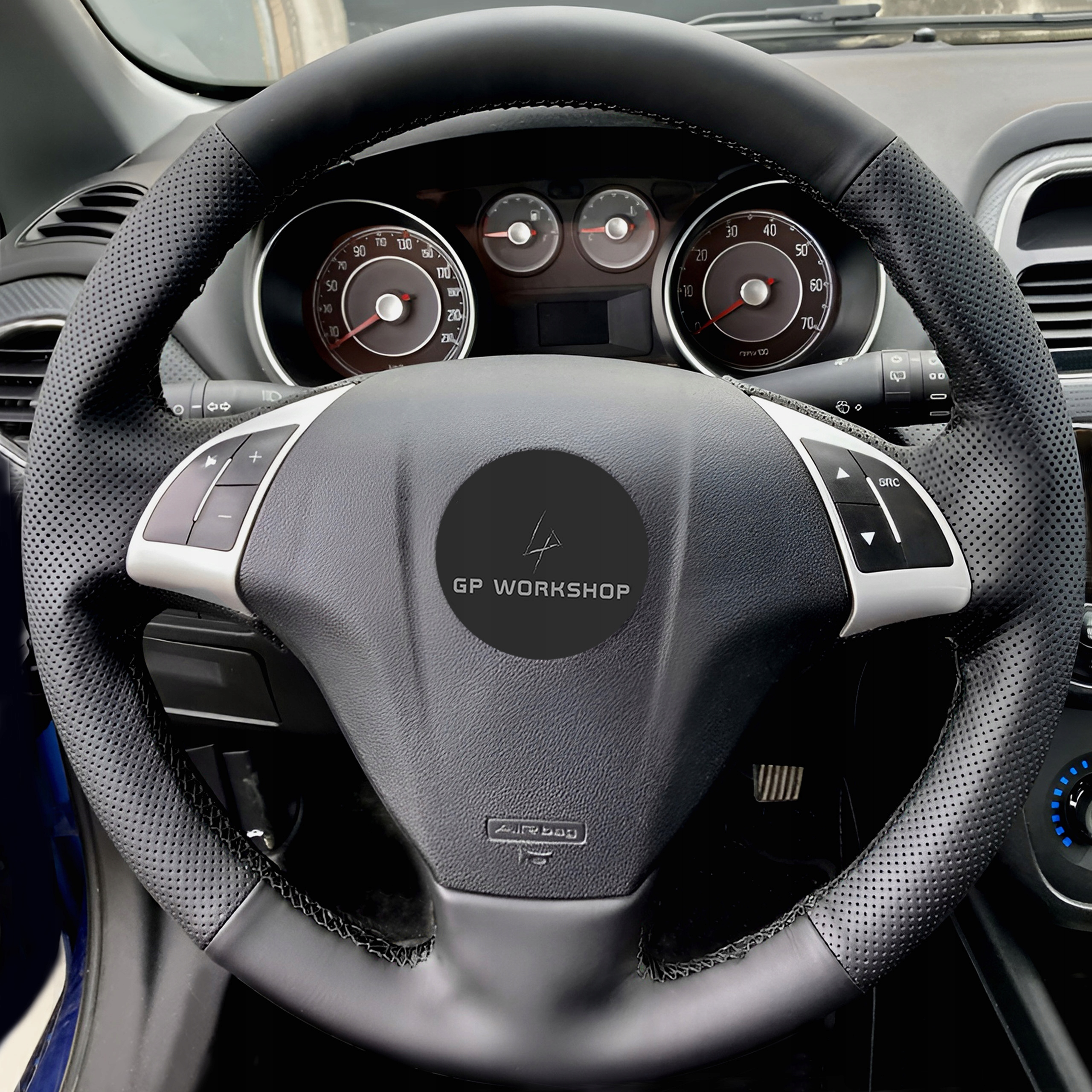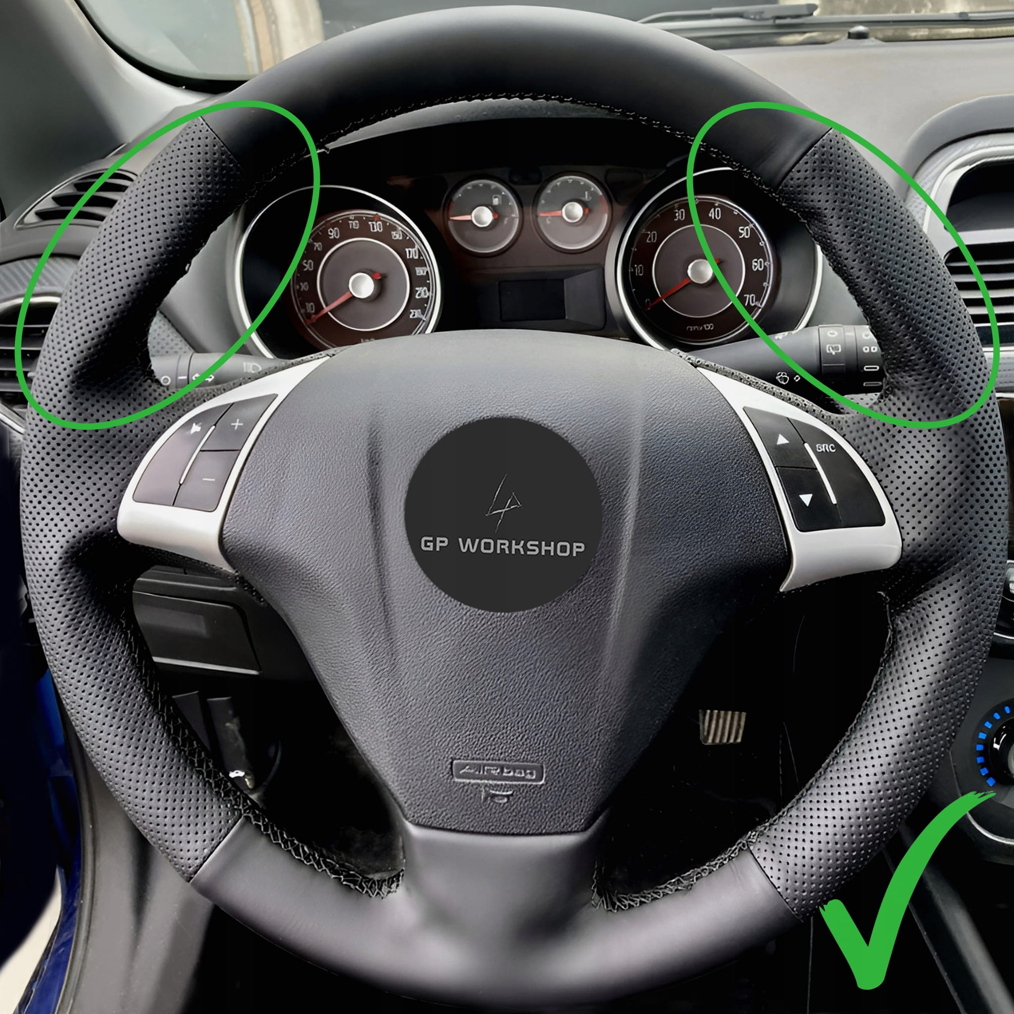Obszycie w tej aukcji zostało zwymiarowane do kierownicy widocznej na zdjęciach - Fiat Bravo (2007-2019), Doblo (2010-2015), Grande Punto (2005-2019), Punto (2007-2019), Linea (2007-2019), Qubo (2008-2015), Opel Combo (2012-2018). Wykrój będzie pasował do Twojej kierownicy, jeśli posiada ona taki sam układ ramion jak na zdjęciach.