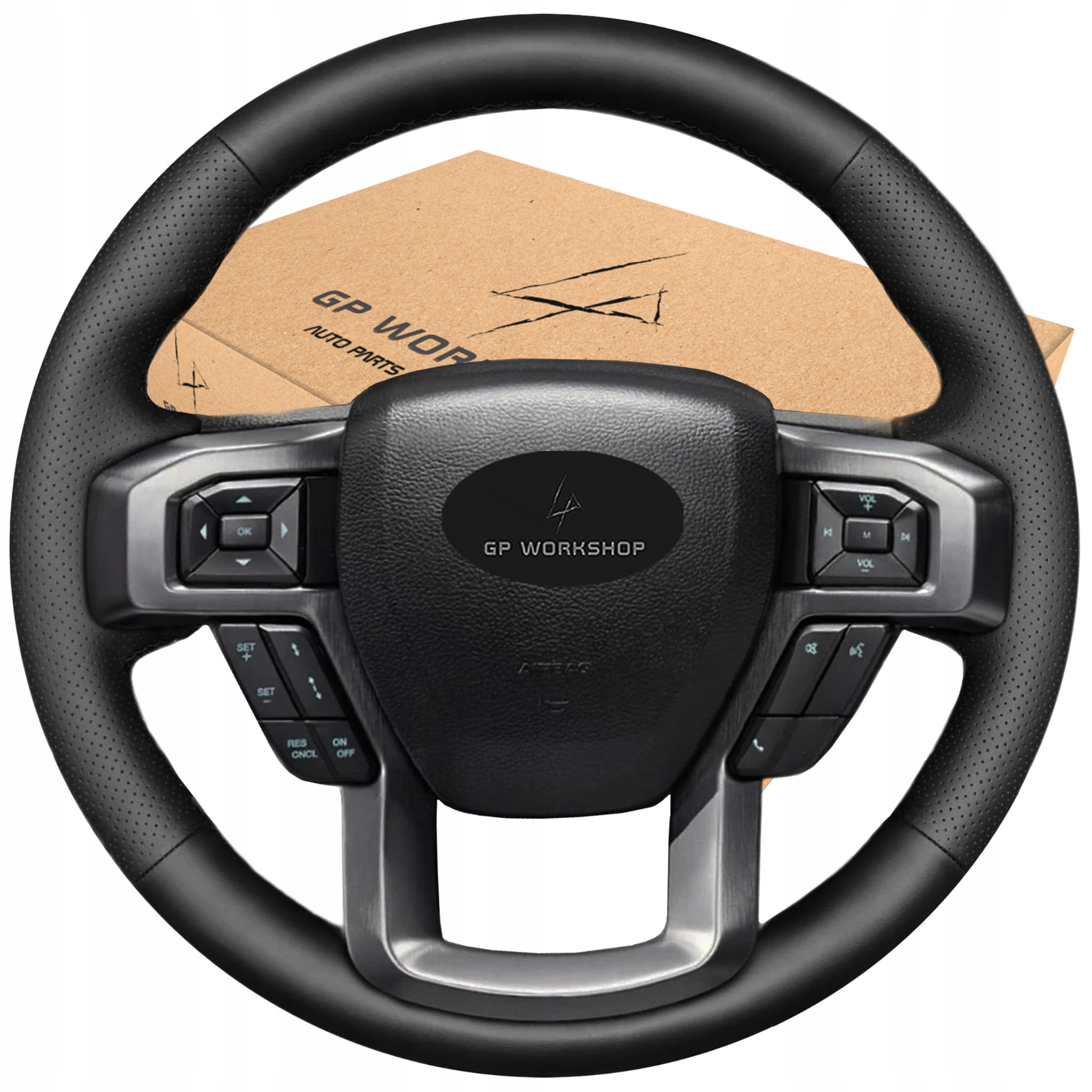 - Obszycie w tej aukcji zostało zwymiarowane do kierownicy widocznej na zdjęciach - Ford F-150 F-250 F-350 F-450 F-550 F-600 (2015-2019). Wykrój będzie pasował do Twojej kierownicy, jeśli posiada ona taki sam układ ramion jak na zdjęciach.