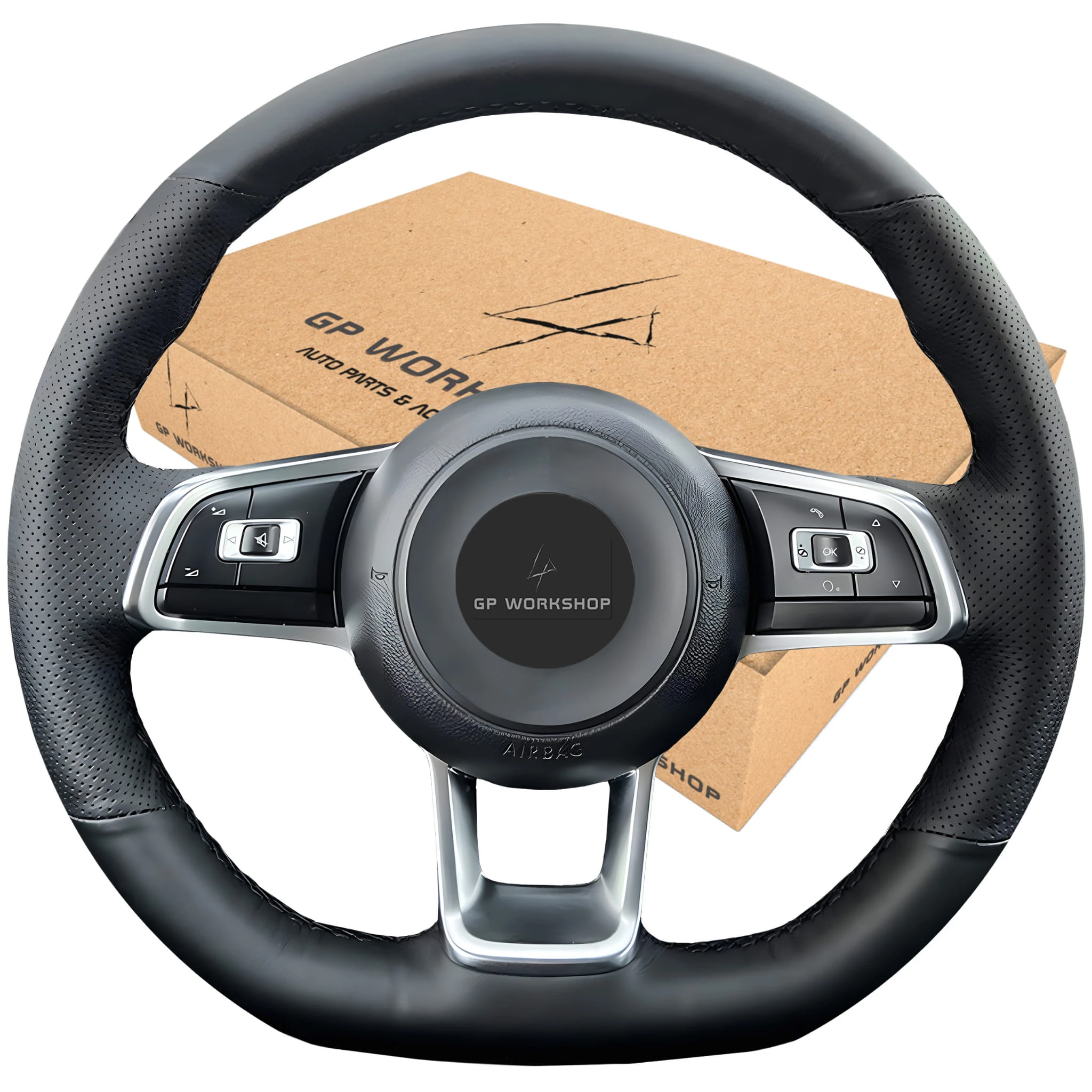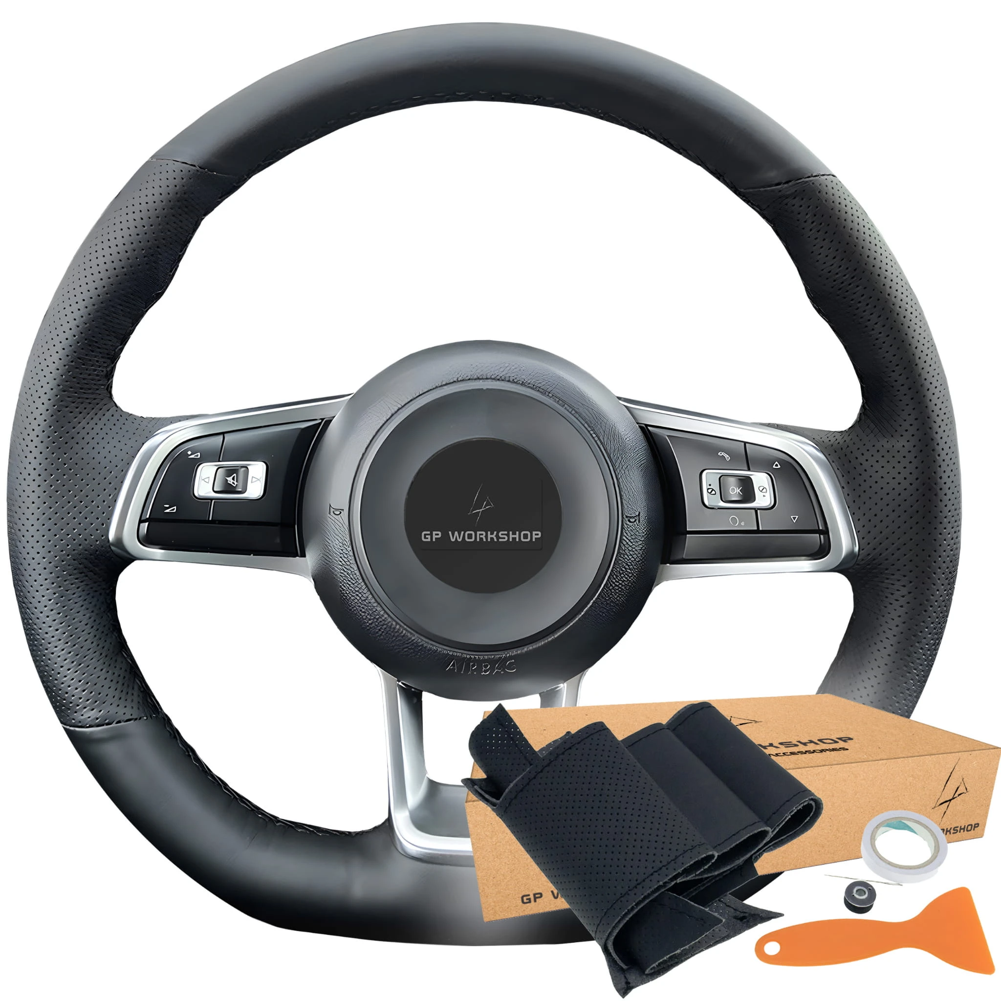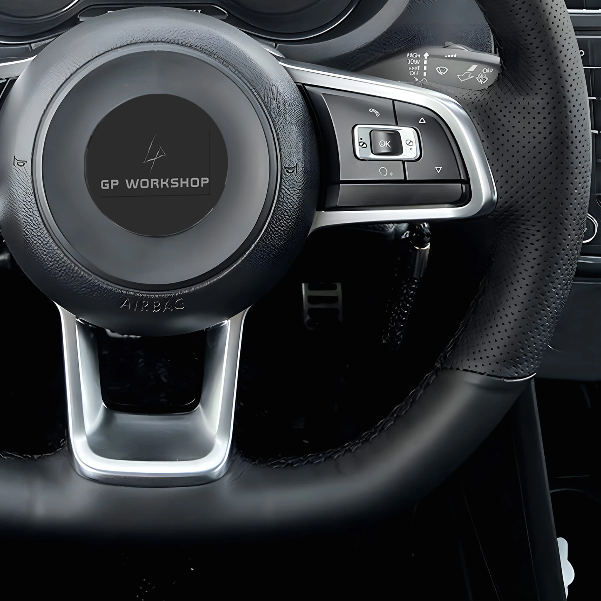 - Obszycie w tej aukcji zostało zwymiarowane do kierownicy widocznej na zdjęciach - Golf GTI 7 (2013-2020), Golf GTD 7 (2013-2020), Golf GTE 7 (2015-2020), Golf R 7 (2014-2020), Jetta GLI (2015-2020), Polo (R-Line) 5 (2014-2017), Polo (R-Line) 6 (2017-2021), Polo GTI 5 (2015-2017), Polo GTI 6 (2017-2021), Scirocco (2014-2018), Up! GTI (2016-2021), Arteon (R-Line) (2017-2020), Passat B8 (R-Line) (2014-2019), Passat Variant (R-Line) (2014-2019), Tiguan (R-Line) (2016-2020), Tiguan Allspace (R-Line) (2017-2021), Touran (R-Line) (2015-2021), T-Roc (R-Line) (2017-2021). Wykrój będzie pasował do Twojej kierownicy, jeśli posiada ona taki sam układ ramion jak na zdjęciach.