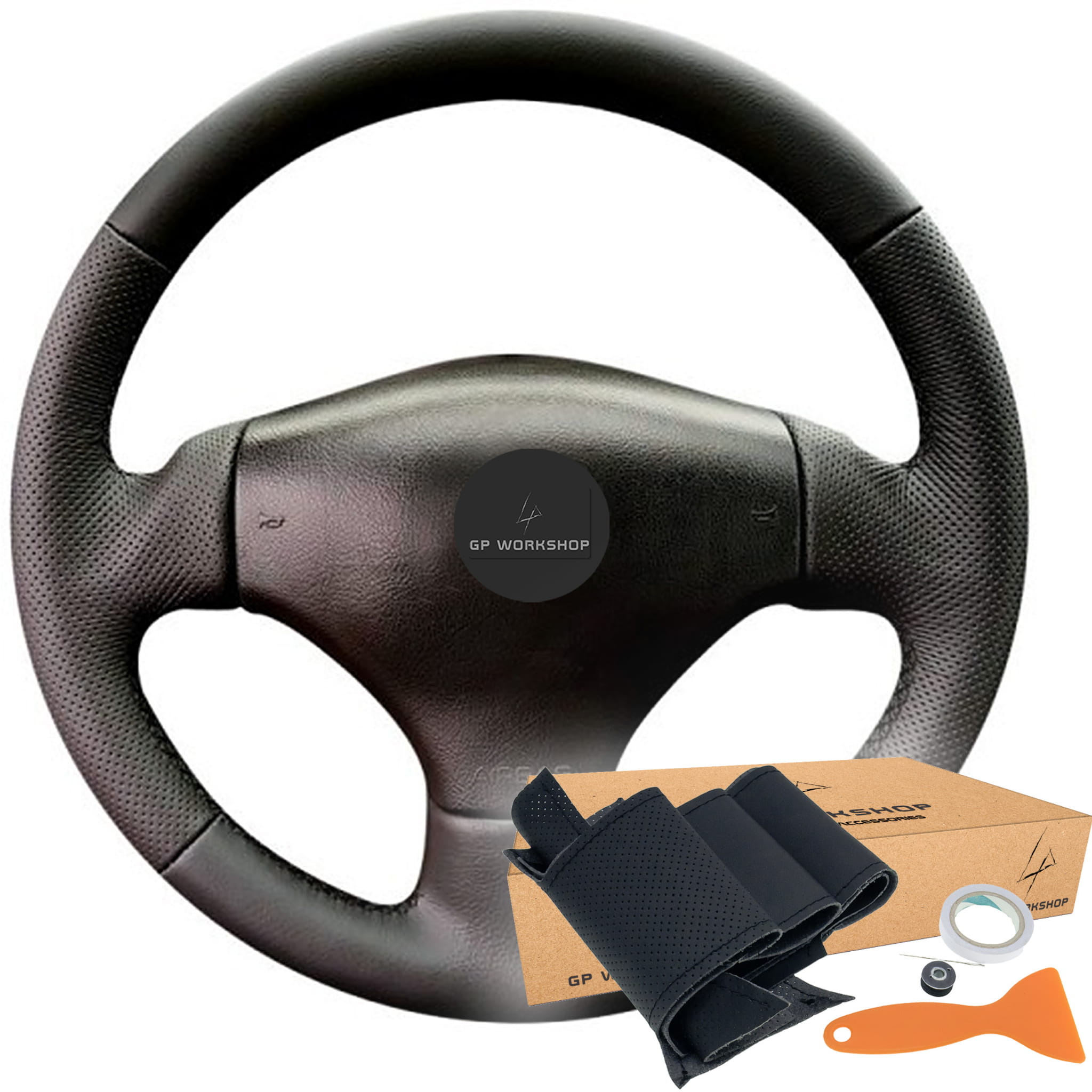 - Obszycie w tej aukcji zostało zwymiarowane do kierownicy widocznej na zdjęciach - PEUGEOT 206. Wykrój będzie pasował do Twojej kierownicy, jeśli posiada ona taki sam układ ramion jak na zdjęciach.