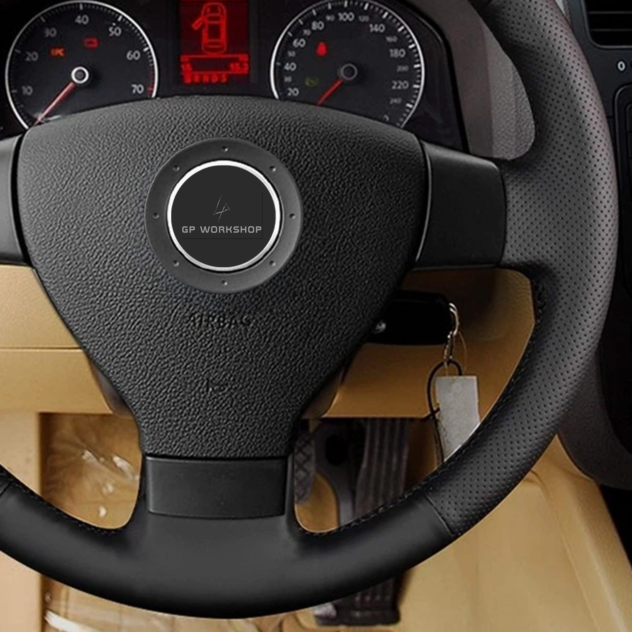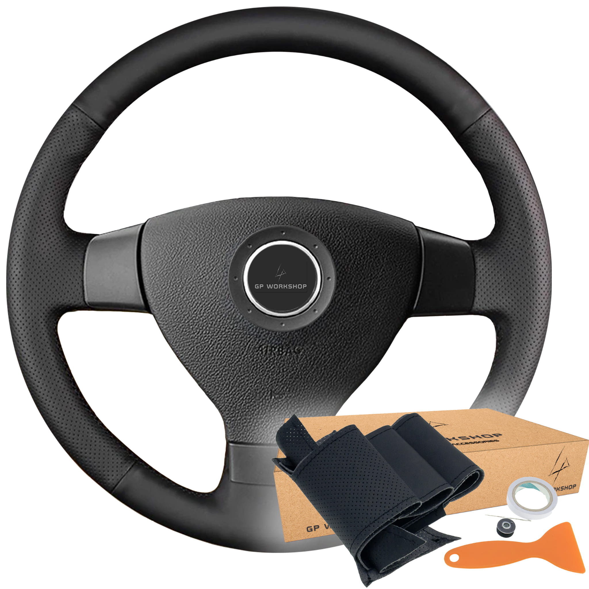 - Obszycie w tej aukcji zostało zwymiarowane do kierownicy widocznej na zdjęciach - VOLKSWAGEN PASSAT B6, GOLF V, JETTA, TIGUAN, POLO, TOURAN, CADDY. Wykrój będzie pasował do Twojej kierownicy, jeśli posiada ona taki sam układ ramion jak na zdjęciach.