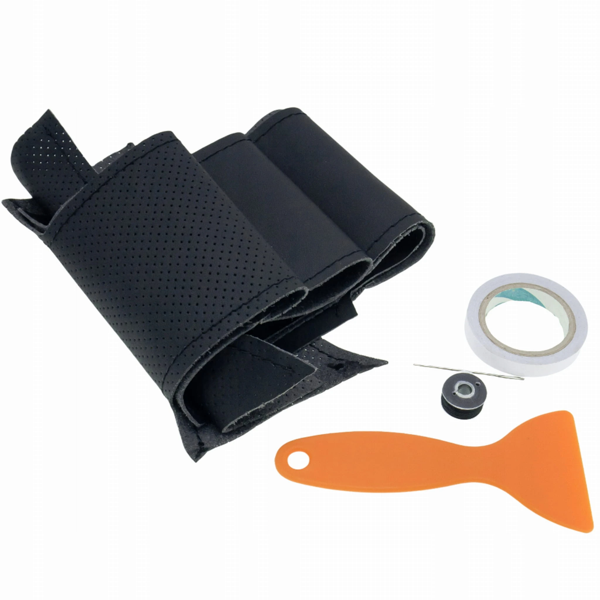 - Cały niezbędny zestaw - w zestawie otrzymujesz wykrój do obszycia kierownicy, taśmę wstępnie pozycjonującą wykrój, nić wraz z igłą do obszycia oraz raklę do umieszczenia krańców w szczelinach